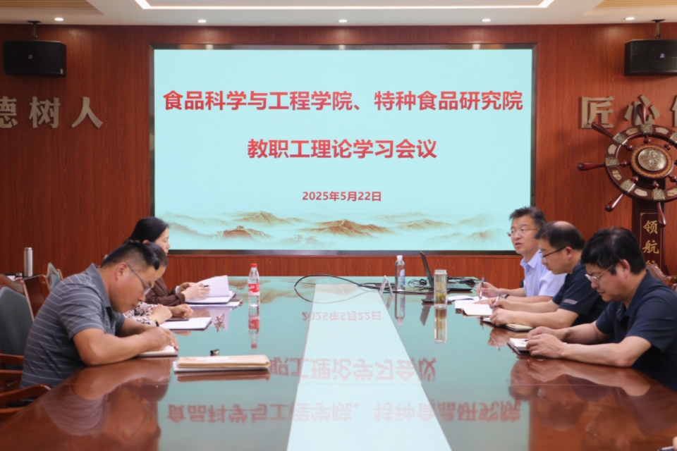 5月22日,beat365在线体育官网、特种食品研究院召开教职工理论学习会议,深入学习习近平总书记重要讲话精神。会议由学院党委书记车广杰主持,全体教职工参加。