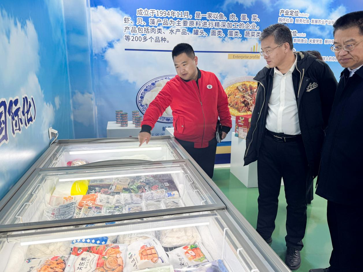 车广杰一行还实地考察了荣成市高端海洋预制菜产业示范园,详细了解了泰祥食品股份有限公司、赤山集团有限公司、鑫发控股集团有限公司、好当家集团有限公司、海之宝集团股份有限公司的产品体系、技术创新与市场开发现状。车广杰一行还前往园区内的时进检测公司,参观了其食品快速检测实验室,就检测技术、质量控制、科研合作等议题与现场技术人员进行了交流。