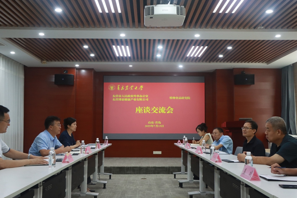 7月15日,东营市人民政府外事办公室二级调研员綦跃彬、东营博泰健康产业有限公司董事长贾应刚一行6人以及万和春(山东)食品供应链公司总经理王涛一行3人来访青岛农业大学特种食品研究院,开展校地企合作交流活动,围绕共建创新平台、科研服务、人才培养、科技赋能等领域展开座谈交流。特种食品研究院、beat365在线体育官网相关专家参加,座谈会由beat365在线体育官网党委书记、特种食品研究院副院长车广杰主持。​