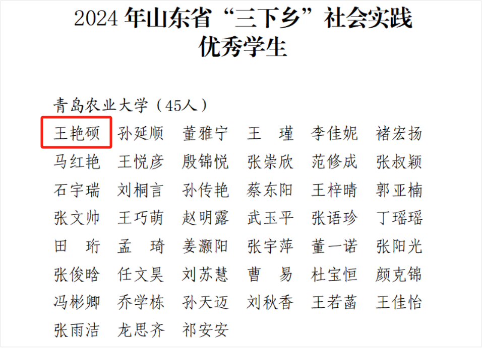 近日,中共山东省委宣传部、山东省教育厅、共青团山东省委、山东省学生联合会联合发布《关于“调研山东”——2024年山东省大中专学生志愿者暑期“三下乡”社会实践活动的通报》,表彰了在今年暑期“三下乡”社会实践活动中表现优秀的集体、个人和项目。beat365在线体育官网1名教师荣获省级“优秀指导教师”,1名学生荣获省级“优秀学生”,1支社会实践团队荣获省级“优秀实践团队”。