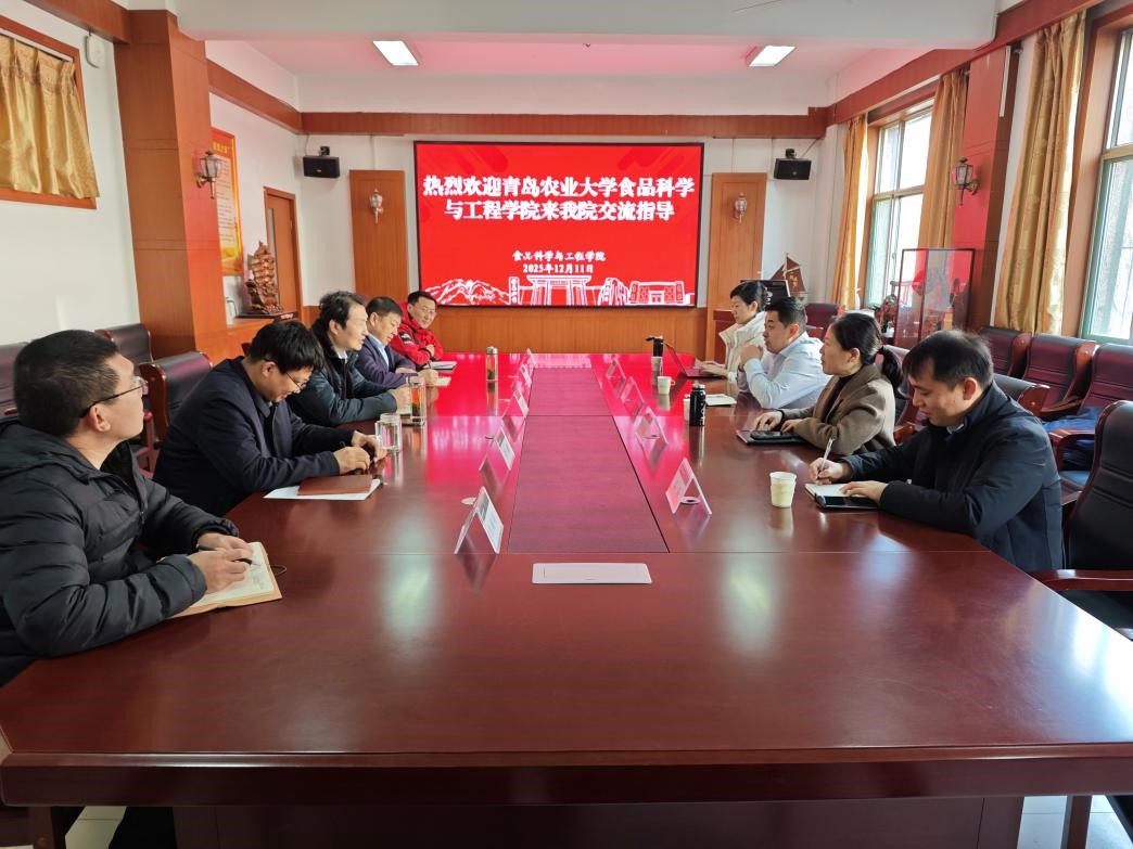 为深化与省内兄弟高校院所的合作交流,推动学科建设、科学研究和人才培养高质量发展,12月11-12日,beat365在线体育官网院长郑金铠教授率队先后赴山东农业大学、齐鲁工业大学(山东省科学院)、中华全国供销合作总社济南果品研究院、山东省农业科学院农产品加工与营养研究所等四家单位进行走访交流。学院副院长肖军霞教授、特种食品研究院合作与转化负责人吴昊教授、科研负责人邓阳教授陪同调研。