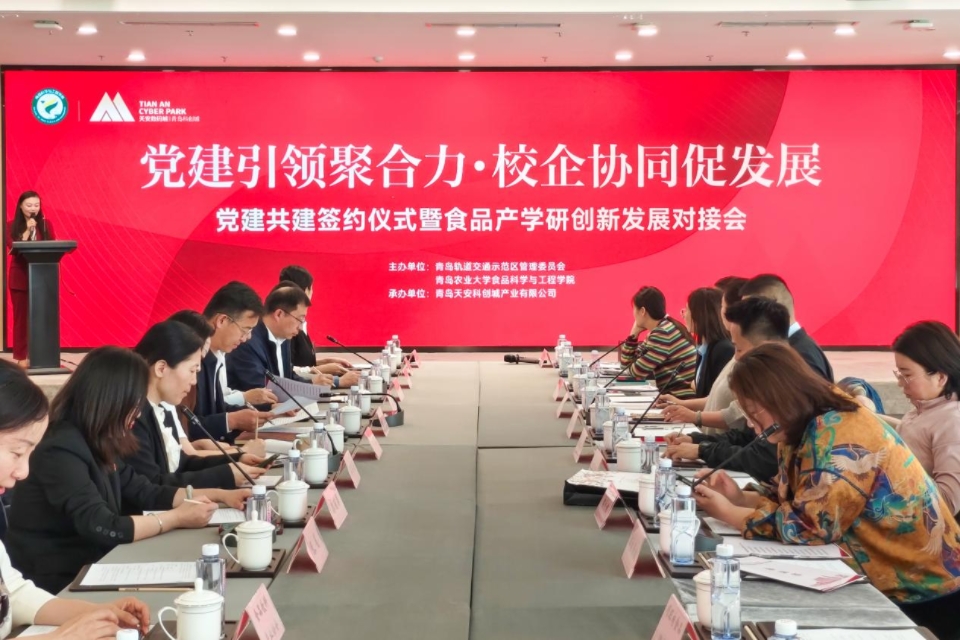4月29日,beat365在线体育官网、青岛轨道交通示范区管理委员会、青岛天安科创城产业有限公司共同举办“党建引领聚合力・校企协同促发展”党建共建签约仪式暨食品产学研创新发展对接会,学院党委与城阳区15家食品企业结成党建联盟,学院第二党支部与青岛奇香源食品公司党支部结对共建,强化联动互通,共同探索“党建+产业”融合发展路径。