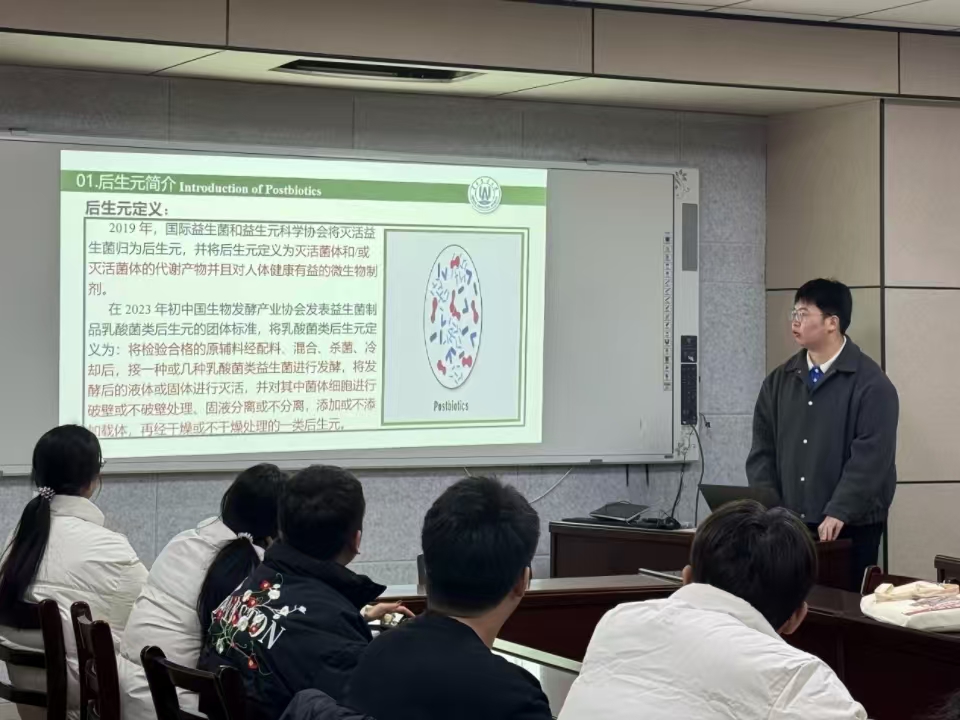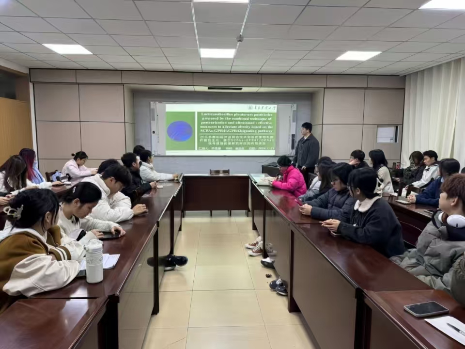 11月21日,食品学院举办了第三十二期“食学研讲”学术汇报活动。本次活动由食品加工与安全专业24级研究生乔恩普主讲,主题为“巴氏杀菌和超声波联合技术制备的植物乳酸杆菌后生元:基于SCFAs - GPR41/GPR43信号通路的缓解肥胖症的有效措施”,吸引了众多师生参与,共同深入探讨微生物在健康领域应用的前沿动态。