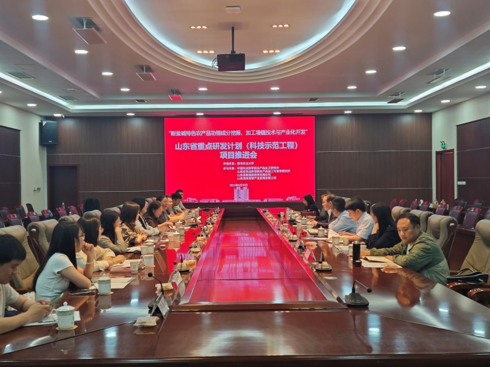 5月19日,青岛农业大学承担的2024年度山东省重点研发计划(科技示范工程)项目“耐盐碱特色农产品功能成分挖掘、加工增值技术与产业化开发”启动会在我校召开。中国农业科学院农产品加工研究所副所长范蓓研究员、山东省农业科学院农产品加工与营养研究所副所长陈蕾蕾研究员、山东息壤生物科技发展有限公司集团开发部总监孙云梅、山东滨海创智产业发展有限公司技术总监郑杨,青岛农业大学校长赵金山、副校长孙庆杰出席会议。会议由科技处副处长徐浩主持。