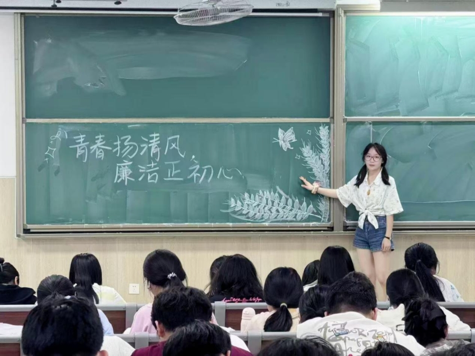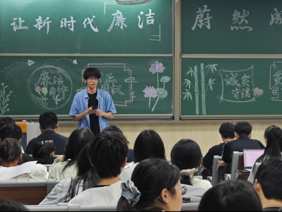 黄金峰通过深入剖析包拯铁面无私、海瑞刚正不阿等历史清官典范,以及方志敏等革命先烈"清贫洁白"的感人事迹,系统阐释了廉洁文化"崇德尚廉、持正守节"的核心内涵及其当代价值。张茗蕾则从社会学视角切入,详细阐述了廉洁文化与社会发展的辩证关系,突出了廉洁文化建设在净化社会风气、维护公平正义方面的关键作用,强调培育廉洁文化是实现中华民族伟大复兴不可或缺的精神基石。黄金峰号召同学们,作为新时代的青年,要将廉洁文化内化于心、外化于行,从自身做起,从小事做起,以实际行动传播廉洁文化,为构建廉洁社会贡献青春力量。