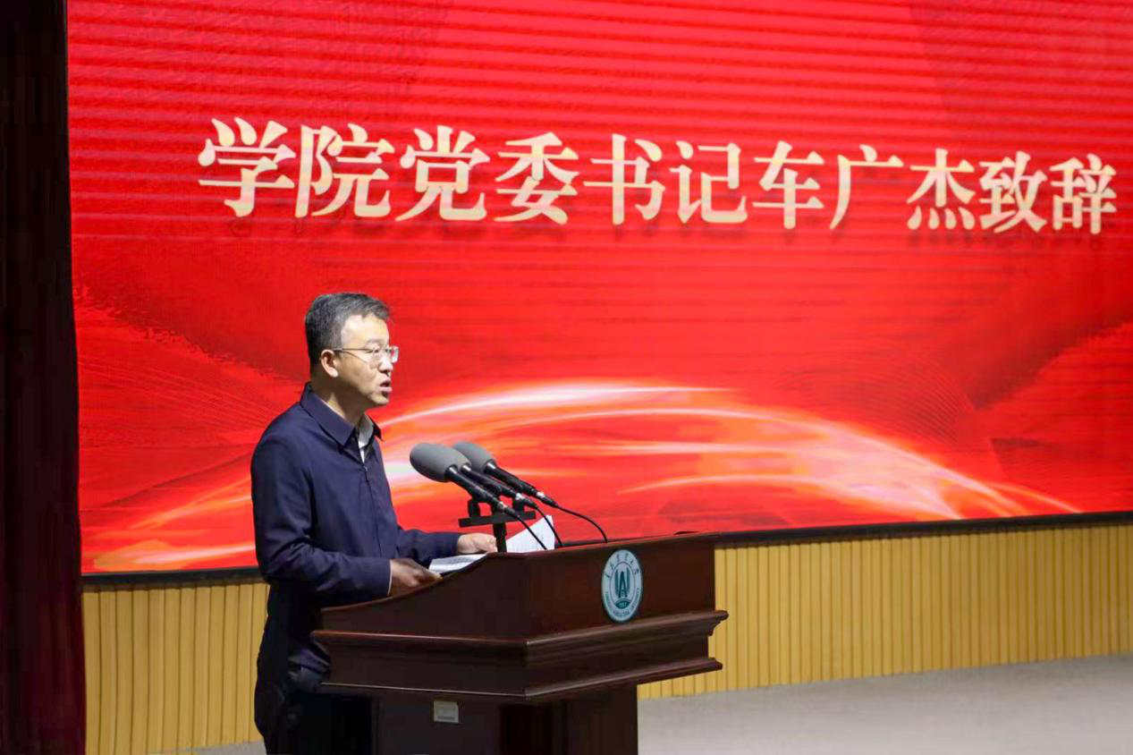 大会在庄严的国歌声中开幕。学院党委书记车广杰回顾了一年来学院围绕“立德树人”根本任务,深耕特色育人体系所取得的扎实成果,并向受表彰的集体与个人表示祝贺。他充分肯定了学子们在专业学习、科研创新、服务社会等方面表现出的“顶天立地”精神风貌,并对同学们提出三点期望:一要胸怀“国之大者”,将个人理想融入“健康中国”“粮食安全”等国家战略;二要锤炼创新能力,勇攀科技高峰;三要弘扬实干作风,在实践锻炼中成长成才,努力成为担当民族复兴大任的时代新人。