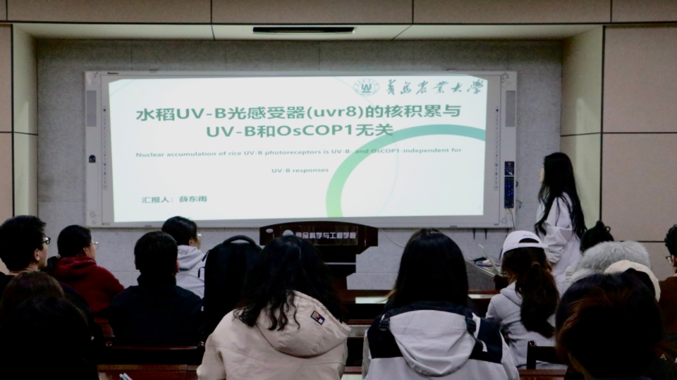 4月10日,食品学院第四十一期“食学研讲”活动在食品楼302顺利举行。本次活动由食品加工与安全专业24级研究生薛东雨主讲,主题为“水稻UV-B光感受器(UVR8)的核积累与UV-B和OsCOP1无关”。