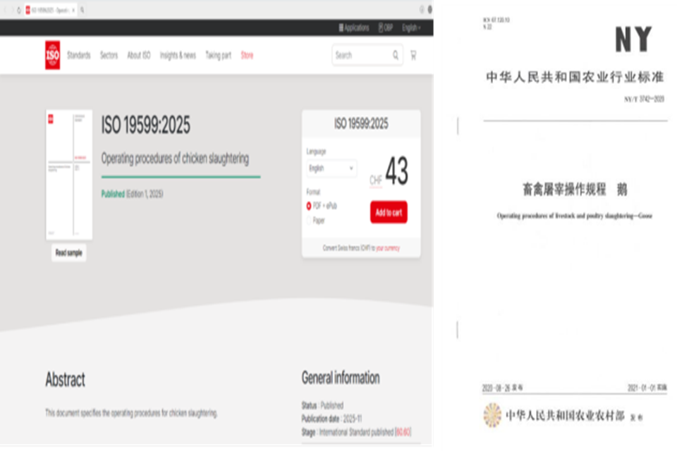 近年来,禽肉已发展成为世界第一大肉类,也是我国增长最快的肉类(其中鸭、鹅肉产量稳居世界第一),是保障居民膳食和优质蛋白的重要来源,关系国计民生。山东省禽肉产量和产品出口居全国第1位,也是全国唯一禽肉产量超过猪肉产量的省份,符合世界肉类消费发展趋势。但在快速集约化转型过程中,禽肉原料普遍出现品质差、损耗大的产业问题,严重影响下游加工产品品质和企业效益,团队从一开始就对此聚焦并联合国家肉鸡和水禽产业技术体系相关专家开展攻关,创新提出引起行业关注的“福利屠宰”术语,先后制定发布了地方标准《肉鸡福利屠宰技术规范》(获2017 年山东省畜牧业主推技术)、《肉鸭福利屠宰技术规程》、《肉鸡宰前电致晕技术规范》,行业标准《畜禽屠宰操作规程 鹅》、《畜禽肉分割技术规程 鹅肉》、《畜禽肉分割技术规程 鸭肉》、《冷却肉加工及流通技术规范》,国家标准《畜禽肉追溯要求》、《食品微生物学检验 肉与肉制品采样和检样处理》,ISO国际标准《Operating procedures of chicken slaughtering》等,在省内外肉禽屠宰企业推广应用,显著保障了原料禽肉品质,提升了企业效益。目前正在制定/修订的还有行业标准《鸡木质肉的检测方法》、《食用禽血》、《冷却肉评定技术规范》、《鸭肉等级规格》,国家标准《鲜、冻禽产品》,ISO国际标准《Operating procedures of duck slaughtering》等。通过持续的系列标准化建设赋能,该团队研究形成鲜明特色并为禽肉加工产业优质原料供给奠定坚实基础。