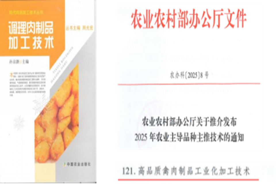 在我国活禽销售被规模化屠宰取代、传统加工向工业化转型的大背景下,禽肉深加工业尚存在加工危害物控制薄弱、食用品质保真难等技术瓶颈,严重影响了居民消费对高质量加工制品的需求。团队通过解析天然产物对多环芳烃等危害物靶向清除机制和活性酶对禽肉抗氧化肽富集规律,结合创新的变压腌制、混合盐替代和多段式梯度升温杀菌技术,研发了领先升级的禽肉制品加工危害物阻遏减控与多维食用品质特征保真技术,攻克了加工安全提升和“原汁原味化”保真难题。针对肉禽副产物如骨头、皮、腹脂、血液等附加值低的问题,发明了绿色低碳的高值化综合利用技术,开发了超微粉碎鸡肉粉、硫酸软骨素、胶原蛋白、甘油二酯、“冻变鲜”火锅鸭血等功能性增值产品。团队主持编写了国内第一部《调理肉制品加工技术》,参与国家肉鸡产业技术体系专家主编/主译的《黄羽肉鸡育种与生产》、《中国现代农业产业可持续发展战略研究 肉鸡分册》、《冷却禽肉加工技术》、《禽肉科学与肉品加工》、《禽肉加工》等著作,参编《现代肉品加工学(第1版)》、《现代食品原料学》、《食品酶学与酶工程(第3版)》等特色规划教材,相关成果获农业农村部2025年农业主推技术和2024年度江苏省行业领域十大科技进展(现代农业领域)。团队通过技术成果转化,助力企业提升市场竞争力和产业链整体效益。