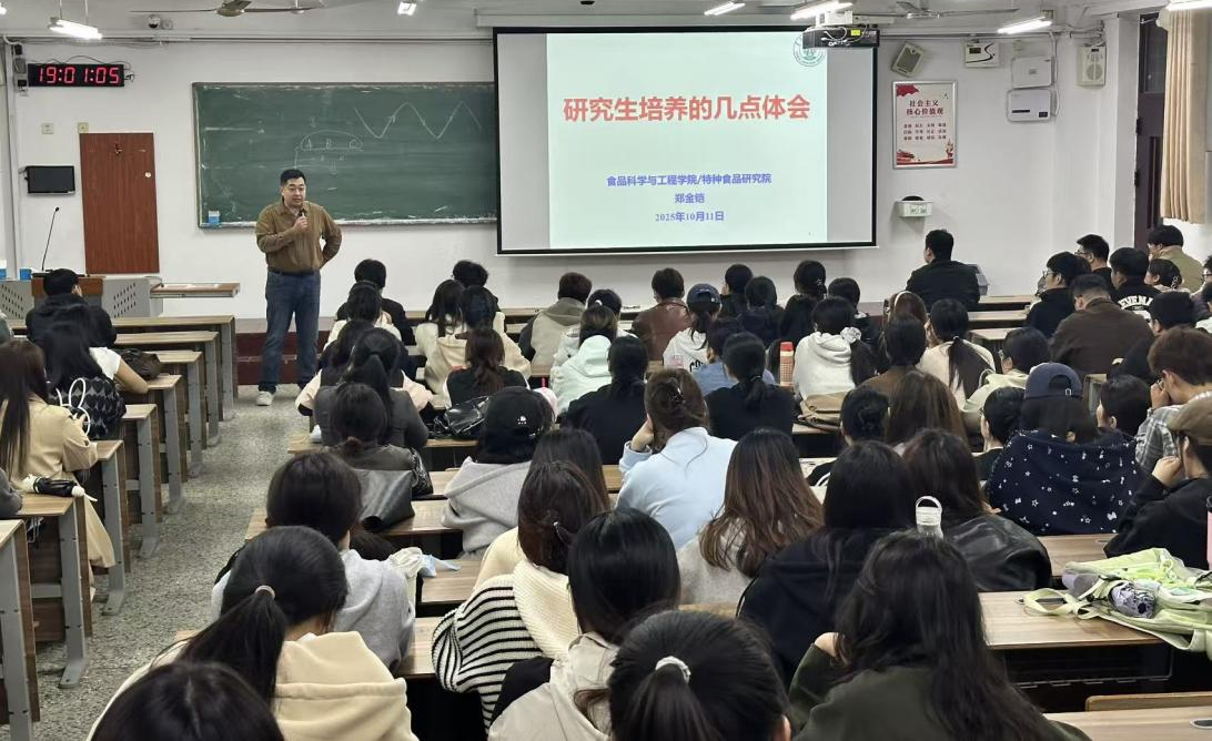 食品学院高度重视新生入学教育,开设《研究生科研素质培养》系列专题讲座,由院长亲自授课,帮助新生完成从本科生到研究生的角色转变,系统提升学习热情与科研素养,为今后学术生涯奠定坚实基础。
