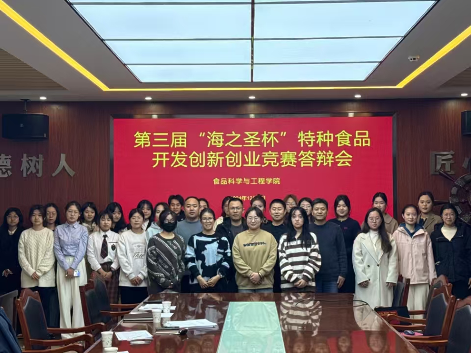 为提升大学生创新实践能力,激发学生的创新创业积极性,12月5日,beat365在线体育官网于食品楼举办食品科技文化节系列活动之第三届“海之圣杯”特种食品开发创新创业竞赛。学院教师李鹏、杨永新、韩荣伟、刘亮出席并担任评委。