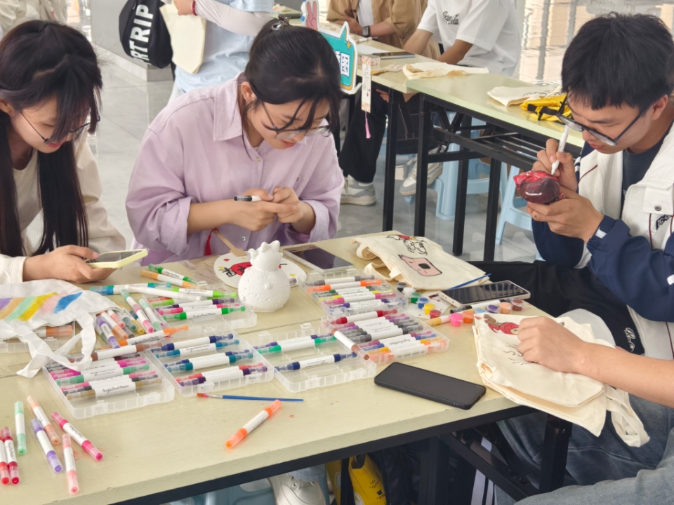 本次彩虹跑创新设置动态、静态活动,让二者共同开展,其中设有8个动态关卡分布于学校各处,各队伍需按抽签路线完成打卡。在“车轮滚滚”关卡中,食品学院的队员们协作推动圆环前进;“一圈到底”里,他们手拉手穿越呼啦圈让团队凝聚力在协作中提升;此外还有“极速五子棋”“有轨电车”等关卡,也从专注力和知识储备等多角度,让同学们在挑战中感受团队协作的乐趣与心灵成长的喜悦。在农史馆内的静态活动区域,串珠DIY体验区也聚集了许多同学,学校提供的各种多元材质的珠子,为同学们提供了广阔的创意空间。食品学子十分积极地参与活动并且乐在其中,通过穿引、排列、固定等工序,将抽象的情绪转化为可触碰的艺术载体。